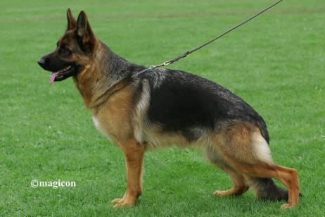 ОТБОРНОЕ ОТЛИЧНО Дата рождения: 01 мая 2011 года Отец: Roy Terrae Lupiae Мать: Julia I de Coroninas Окрас: Черно-рыжий Описание: BSZS 2012 JKL Huendinnen. Richterin Frau Margit van Dorssen. Описание с Чемпионата Мира 2012 года, Ульм, Германия. Класс юниоров сук. Судья Маргит ван Дорссен. Представленная сука испанского разведения - большая, средней силы, содержательная с впечатляюще гармоничным строением корпуса и очень правильными формами. Зения - особенно выразительная, с очень хорошо сформированной головой, темными глазами и корректным поставом ушей. У нее правильное соотношение длины и высоты, высокая, длинная холка, прямая, крепкая спина, очень хорошие длина и положение крупа. Корректные углы передних и задних конечностей. Очень хорошо выраженная передняя часть груди, отлично проходящая линия нижней части груди.Прямой фронт, прямой шаг.Сильные, с хорошим захватом пространства движения, с хорошим толчком и свободным вымахом, при очень хорошей общей крепости и балансе. В день Главной выставки Зения была представлена не в абсолютно лучшей форме, и не смогла показать столь же динамичных движений , как на предварительных выставках сезона, из-за этого потеряла два места в ринге. В разведении эта происходящая из "неперегруженных" линий сука, может уверенно себя зарекомендовать.