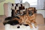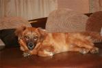 (Аурум Аглис Лаура) Окрас: Описание: Небольшого размера, компактная, рыжая собачка, с умным выражением ( внешняя форма полностью соответствует внутреннему содержанию, Хасюшка очень умна!) Форма головы абсолютно подходит под руку человека, сидящего за обеденным столом. Форма и размер Хасюшкиного тела совпадает с формой любимого дедушкиного кресла. Шерсть этой небольшой собачки очень шелковистая, мягкая и имеет чудесную способность находиться в самых различных местах. Пушистость "штанишек" и хвостика собачки при этом, неизменна. При вертикальном виляющем положении Хасюшкиного хвоста - окружающие слышат громкие, высокие звуки, которые через три минуты заставляют вошедшего в дом, зажав уши, выбежать вон. Нос и маленький ротик Хасюшки прекрасно приспособлены к ежедневному вечернему употреблению кефира, о котором она никогда не забывает напомнить дедушке.