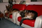3 х Чемпион РКФ, Чемпион ОАНКОО, 2 х CACIB, 4 х RCACIB Дата рождения: 28 мая 2003 года Отец: Xadro v.Bad-Boll Мать: ANGIE di Casa di Sandra Окрас: Черно-рыжий Описание: Среднего роста, достаточно пигментирован, желательно больше черного на верхней части головы, высокая холка, очень хорошие линии верха и низа, не прочны связки спины, хорошие углы передних, подчеркнуты углы задних конечностей, прямой фронт, корректный постав ушей, темные глаза, прямая поступь, плавный ход, был представлен несколько тяжеловатым.