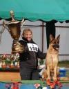 ОТБОРНОЕ ОТЛИЧНО Дата рождения: 01 мая 2011 года Отец: Roy Terrae Lupiae Мать: Julia I de Coroninas Окрас: Черно-рыжий Описание: BSZS 2012 JKL Huendinnen. Richterin Frau Margit van Dorssen. Описание с Чемпионата Мира 2012 года, Ульм, Германия. Класс юниоров сук. Судья Маргит ван Дорссен. Представленная сука испанского разведения - большая, средней силы, содержательная с впечатляюще гармоничным строением корпуса и очень правильными формами. Зения - особенно выразительная, с очень хорошо сформированной головой, темными глазами и корректным поставом ушей. У нее правильное соотношение длины и высоты, высокая, длинная холка, прямая, крепкая спина, очень хорошие длина и положение крупа. Корректные углы передних и задних конечностей. Очень хорошо выраженная передняя часть груди, отлично проходящая линия нижней части груди.Прямой фронт, прямой шаг.Сильные, с хорошим захватом пространства движения, с хорошим толчком и свободным вымахом, при очень хорошей общей крепости и балансе. В день Главной выставки Зения была представлена не в абсолютно лучшей форме, и не смогла показать столь же динамичных движений , как на предварительных выставках сезона, из-за этого потеряла два места в ринге. В разведении эта происходящая из "неперегруженных" линий сука, может уверенно себя зарекомендовать.